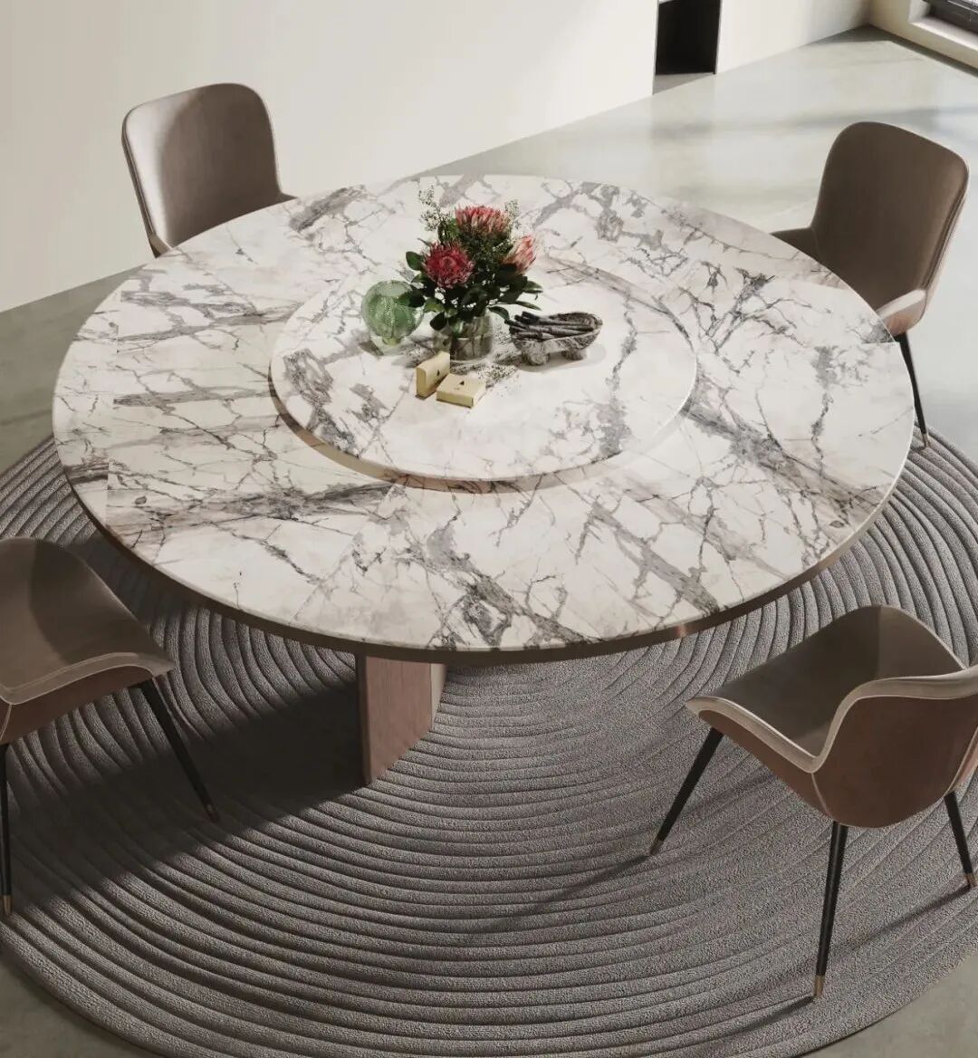 MATERIAL/岩板主材:卡普里白STATUARIO CAPRISIMPLICITY IS THE SOUL OF AN INTERESTING LIFE. STATUARIO CAPRI MADE THE EXTREMELY THIN ROCK BOARD TABLETOP, WITH THE OVAL FOOT OF 4:1 GOLDEN RATIO OF THICKNESS TO THICKNESS, TO SHOW THE ELEGANT VISUAL SENSE.简约是趣味生活的灵魂。由卡普里白STATUARIO CAPRI打造而成的极致轻薄的岩板桌面,搭配4:1黄金比例粗细的椭圆型桌脚,展现优雅的视觉感官。