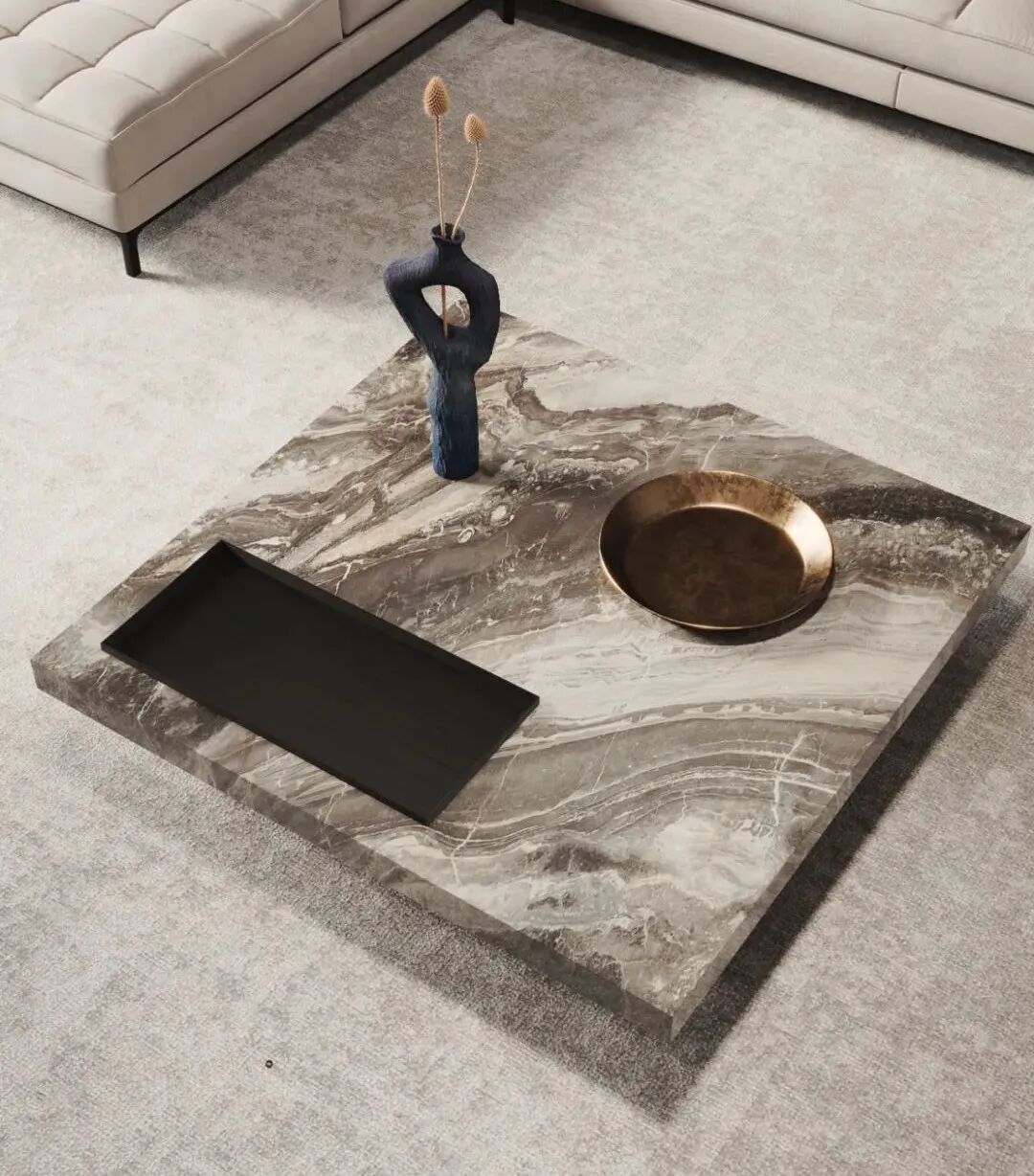 TODAY, AFTER MORE THAN 40 YEARS, SCHENDER INTERNATIONAL DESIGN TEAM HAS DESIGNED A PIECE OF SCHIST SLAB INTO A CUSTOMIZED BOUTIQUE FOR HOME FURNISHING, GIVING THE SLAB MORE USES AND A BROADER MARKET SPACE.40多年后的今天,SCHENDER国际设计团队将一片片岩板设计成家居定制精品,赋予岩板更多的用途和更广阔的市场空间。NAME/品名:BORING LIFE方圆组合茶几SIZE/尺寸:(方)90X90XH35CM+(圆)Ø83XH42CMMATERIAL/岩板主材:TRAVERTINO GRIGIO意大利银灰洞石+FIOR DI BOSCO爱马仕灰DESIGNER/设计师:LUCA NICHETTOA ROUND SKY AND A ROUND PLACE ARE THE WISDOM OF THE ANCIENT ORIENT, AND COMFORT AND CONVENIENCE ARE THE WISDOM OF LIFE. THE TEA TABLE IS OF DIFFERENT HEIGHT, WHICH CAN BE OVERLAPPED AND USED TOGETHER OR ARRANGED SEPARATELY, WHICH IMPROVES THE FLEXIBILITY AND CONVENIENCE OF LIFE.天圆地方是古老东方的智慧,舒适便利就是生活智慧。方圆茶几不同高度,既可以重叠结合使用,也可以分开布置,提升了生活的灵活性和便利性。
