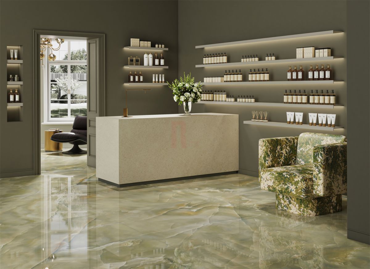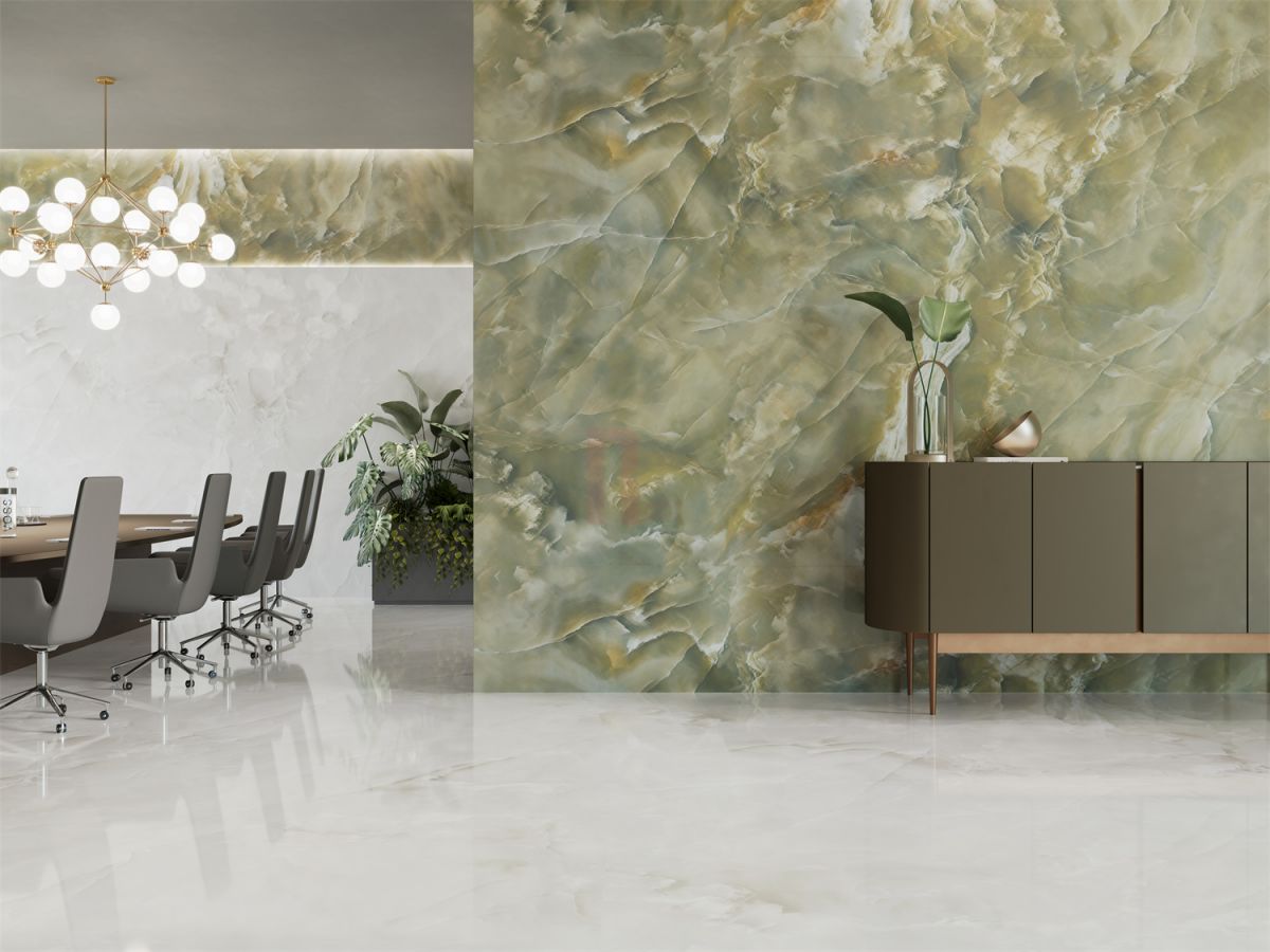 白的纯净,粉的浪漫,青的质朴。SCHENDER冰玉系列具有千万年岩层挤压的块状纹理,粗硕的冰裂纹质感通透自然顺滑,细腻洁净而纯粹。 冰玉系列岩石色泽鲜艳,游走于时尚与自然之间。大空间铺贴能营造高雅时尚的家居氛围,个性化搭配应用又可以恰到好处地点缀其间,展现出天然玉石的自然气质。